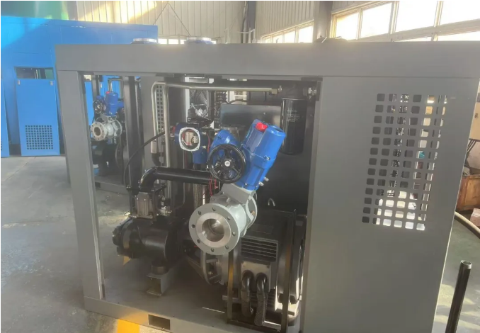 進(jìn)氣外圍同時(shí)增加流量控制閥,在增壓空氣的同時(shí),確保增壓機(jī)內(nèi)外壓差值在一個(gè)合理范圍,以及補(bǔ)氣和泄氣的有效控制,確保螺桿增壓機(jī)在運(yùn)轉(zhuǎn)的過程中不出現(xiàn)系統(tǒng)性風(fēng)險(xiǎn)。