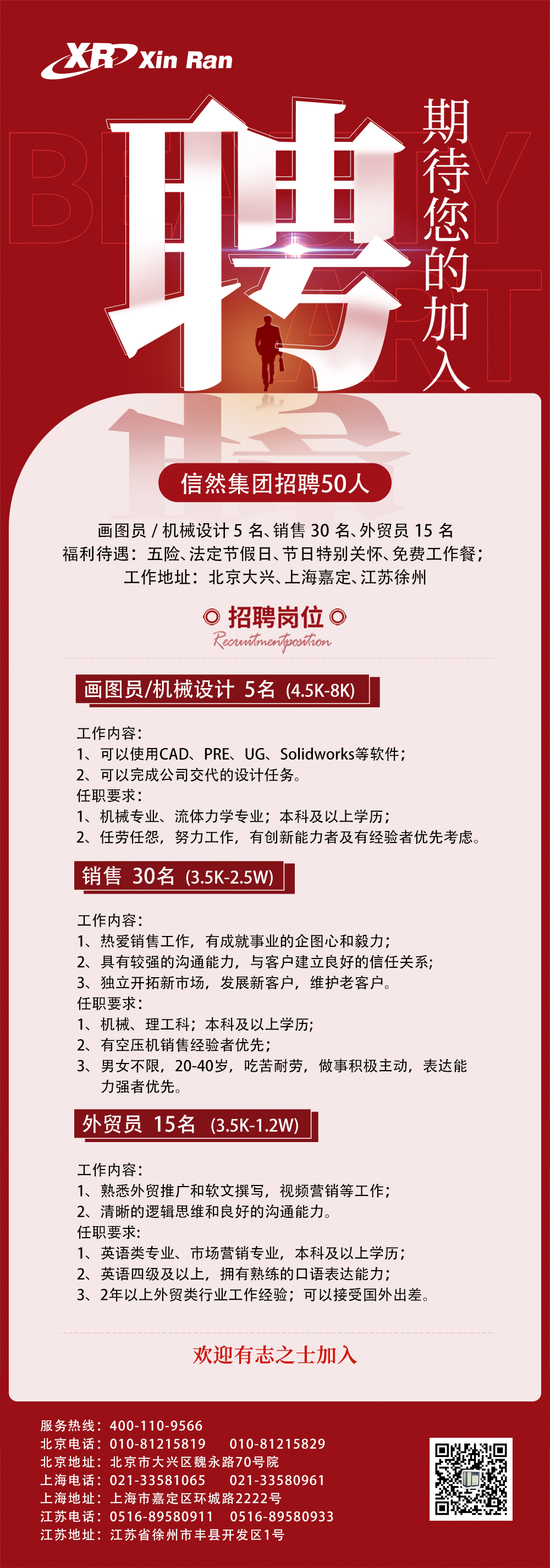信然集團(tuán)是專業(yè)的空壓機(jī)、真空泵、鼓風(fēng)機(jī)、氫能源設(shè)備生產(chǎn)制造商,現(xiàn)2025年誠聘 “ 天下英才 ” 共謀發(fā)展大計!期待您的加入!我們聘在北京、上海、廣州、徐州、烏魯木齊等公司負(fù)責(zé)人...