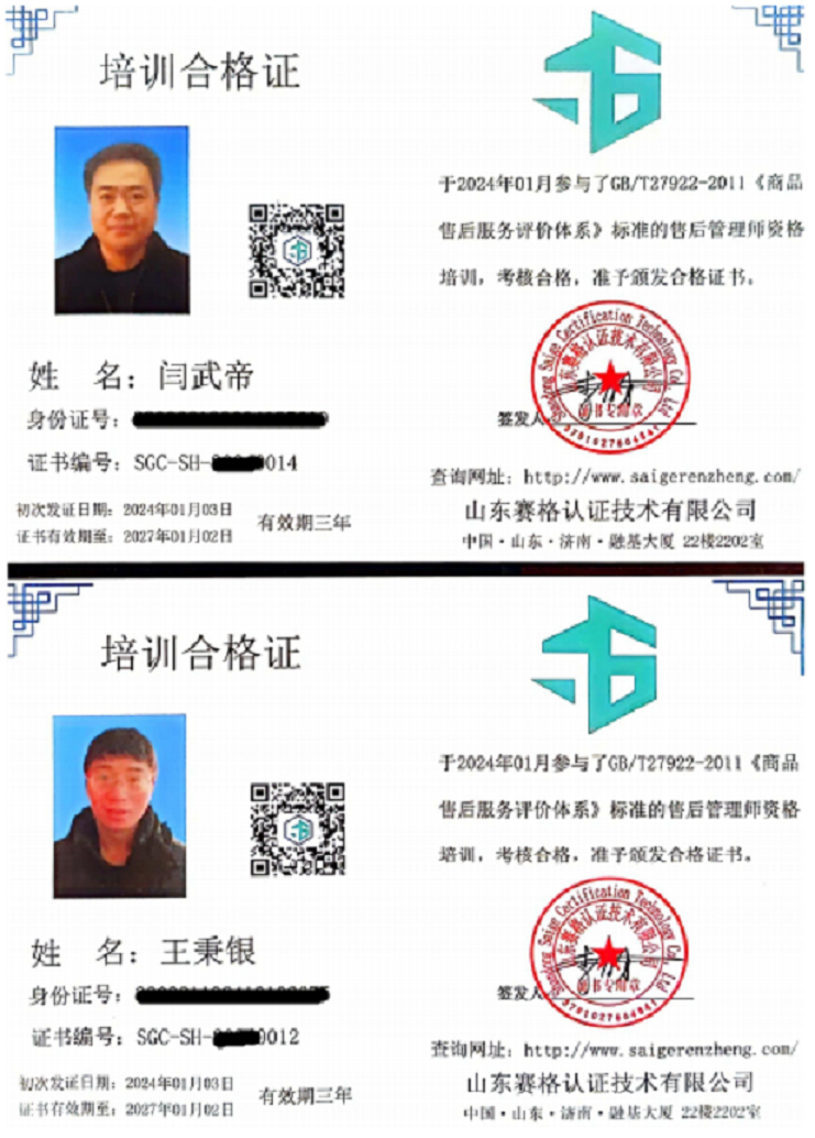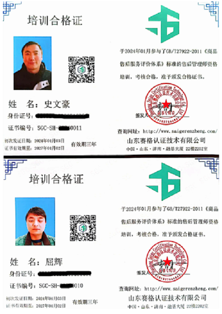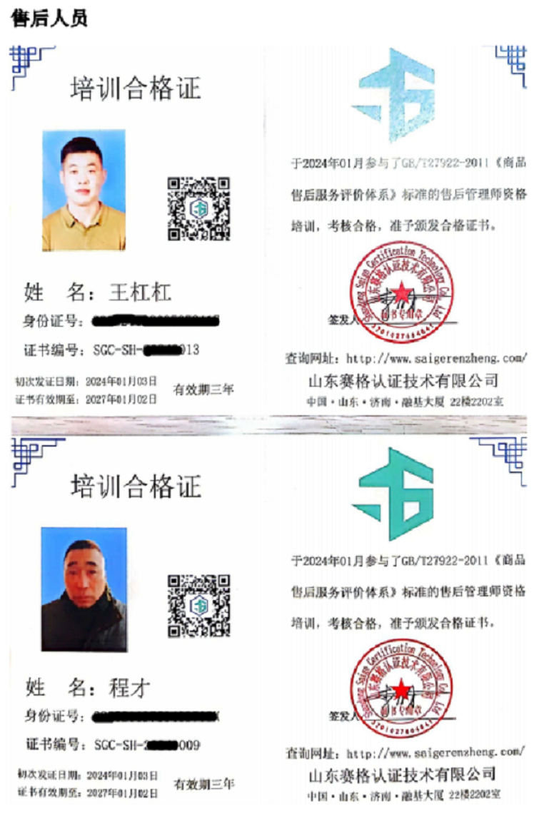 三、商品售后服務(wù)評(píng)價(jià)體系證書