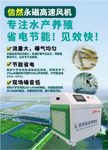 一臺(tái)設(shè)備可覆蓋上百畝魚塘,降低設(shè)備購(gòu)置成本,減少噪音和油污染,推動(dòng)低碳養(yǎng)殖。信然高速空氣/磁懸浮增氧機(jī)可集成AI水質(zhì)監(jiān)測(cè)、自動(dòng)啟停等功能,實(shí)現(xiàn)全周期無(wú)人化管理,進(jìn)一步提升養(yǎng)殖效率。信然高速空氣/磁懸浮增氧機(jī)通過節(jié)能降耗、智能調(diào)控和穩(wěn)定供氧,成為高密度養(yǎng)殖的核心裝備。