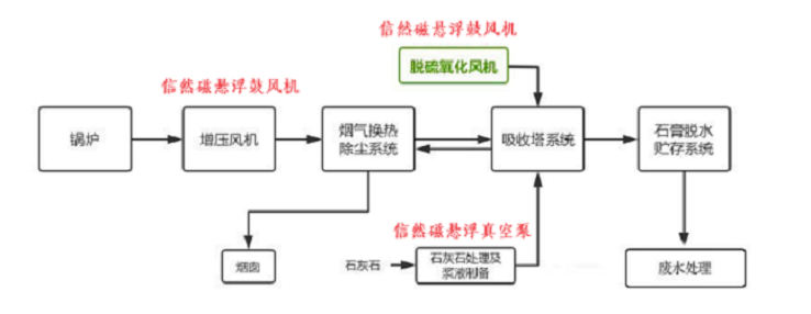 信然磁懸浮風機在電廠脫硫氧化的主要作用是為吸收塔漿液池提供氧氣,促進亞硫酸鈣氧化為硫酸鈣(石膏),確保脫硫效率和石膏結(jié)晶質(zhì)量。