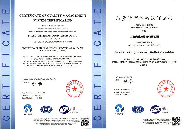 - 信然壓縮機(jī)質(zhì)量管理體系(ISO 9001)是企業(yè)發(fā)展壯大的基礎(chǔ),核心是通過規(guī)范流程穩(wěn)定服務(wù)質(zhì)量,追求零缺陷目標(biāo),體現(xiàn)對(duì)客戶負(fù)責(zé)的形象。