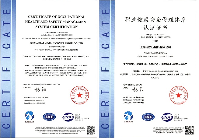 - 信然壓縮機(jī)職業(yè)健康安全管理體系(ISO45001)早期表述為OHSAS 18001,現(xiàn)多以ISO 45001為替代標(biāo)準(zhǔn),聚焦生產(chǎn)過程中的事故預(yù)防與員工健康保護(hù),體現(xiàn)企業(yè)對(duì)員工的責(zé)任。