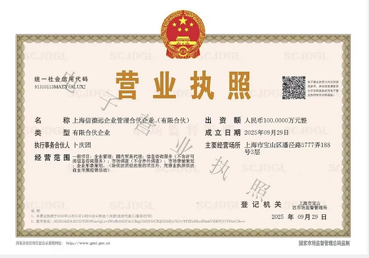 祝賀:上海信德遠(yuǎn)企業(yè)管理合伙企業(yè)(有限合伙)成立