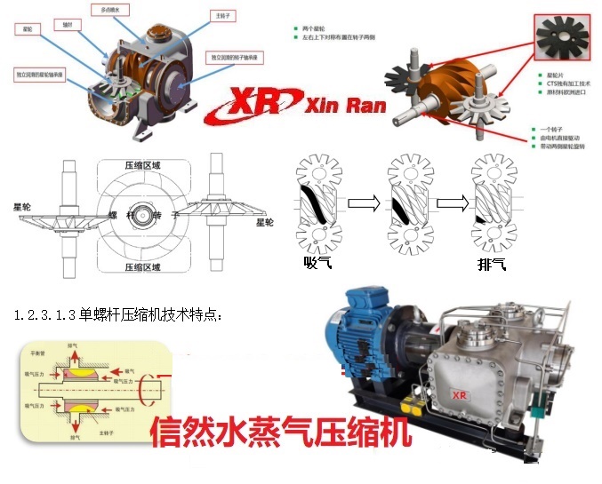 2、針對MVR系統(tǒng)優(yōu)化設(shè)計的單螺桿壓縮機(jī),能夠盡可能的提升吸排氣溫度差。以95℃吸氣溫度為例,可獲得150℃的排氣溫度,節(jié)能效果好,和其他壓縮機(jī)相比優(yōu)勢明顯;