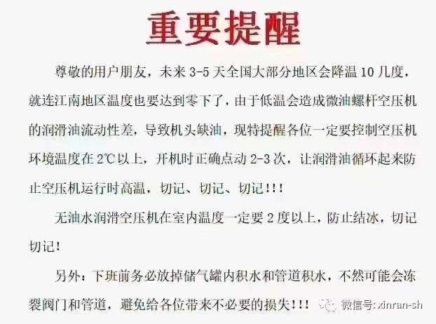 冬季螺桿空壓機(jī)務(wù)必注意!
