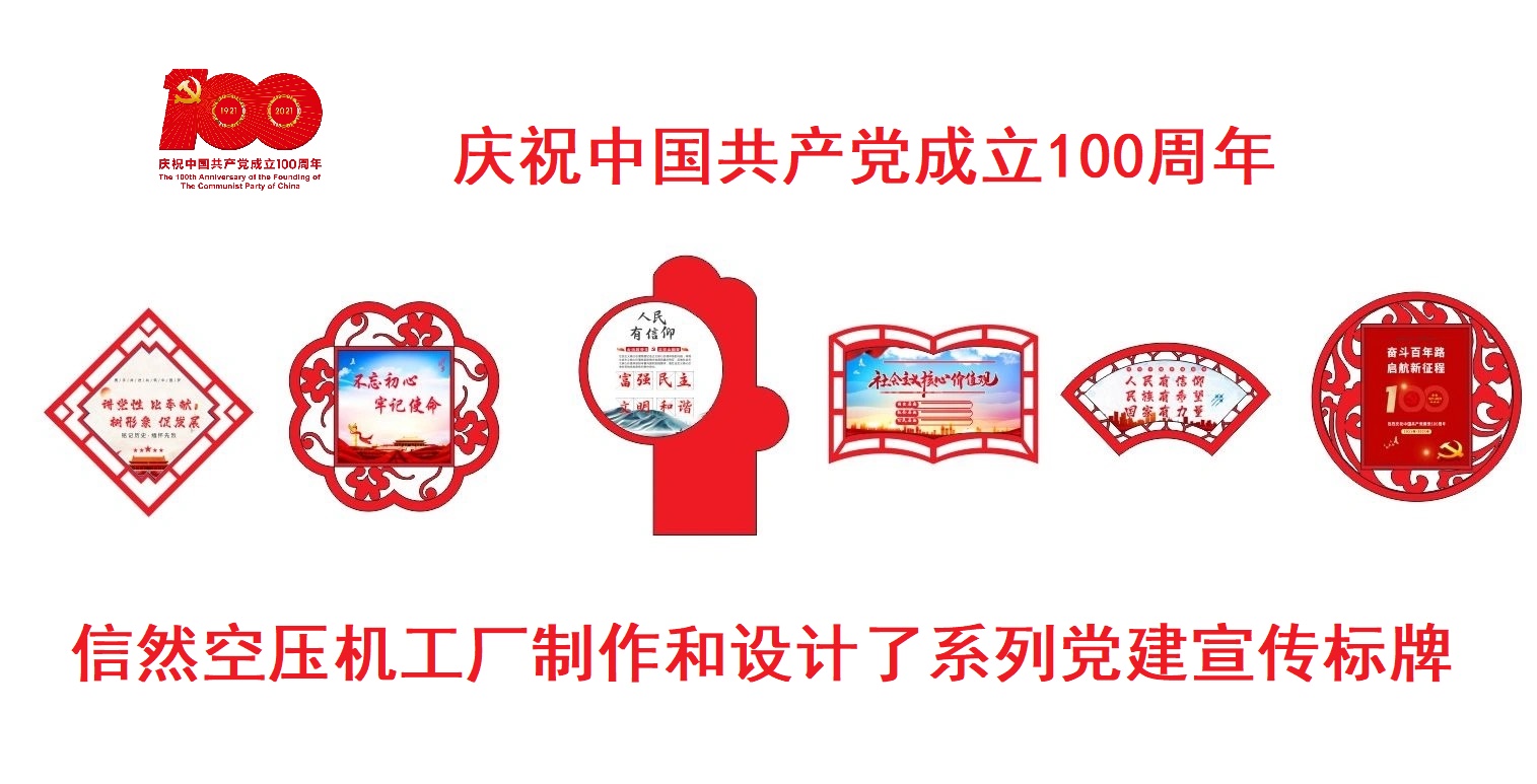 信然空壓機(jī)工廠為迎接建黨100周年,特制作各式大型戶外宣傳牌一批。