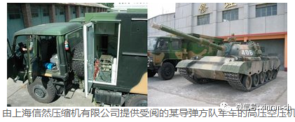 信然高壓空壓機配套中國較大的軍工企業(yè):北方化學(隸屬中國兵器集團)某部導彈方隊軍車及某空軍某戰(zhàn)斗機場等,此批超高壓空壓機產自上海信然壓縮機有限公司,共計40多臺超高壓壓縮機。