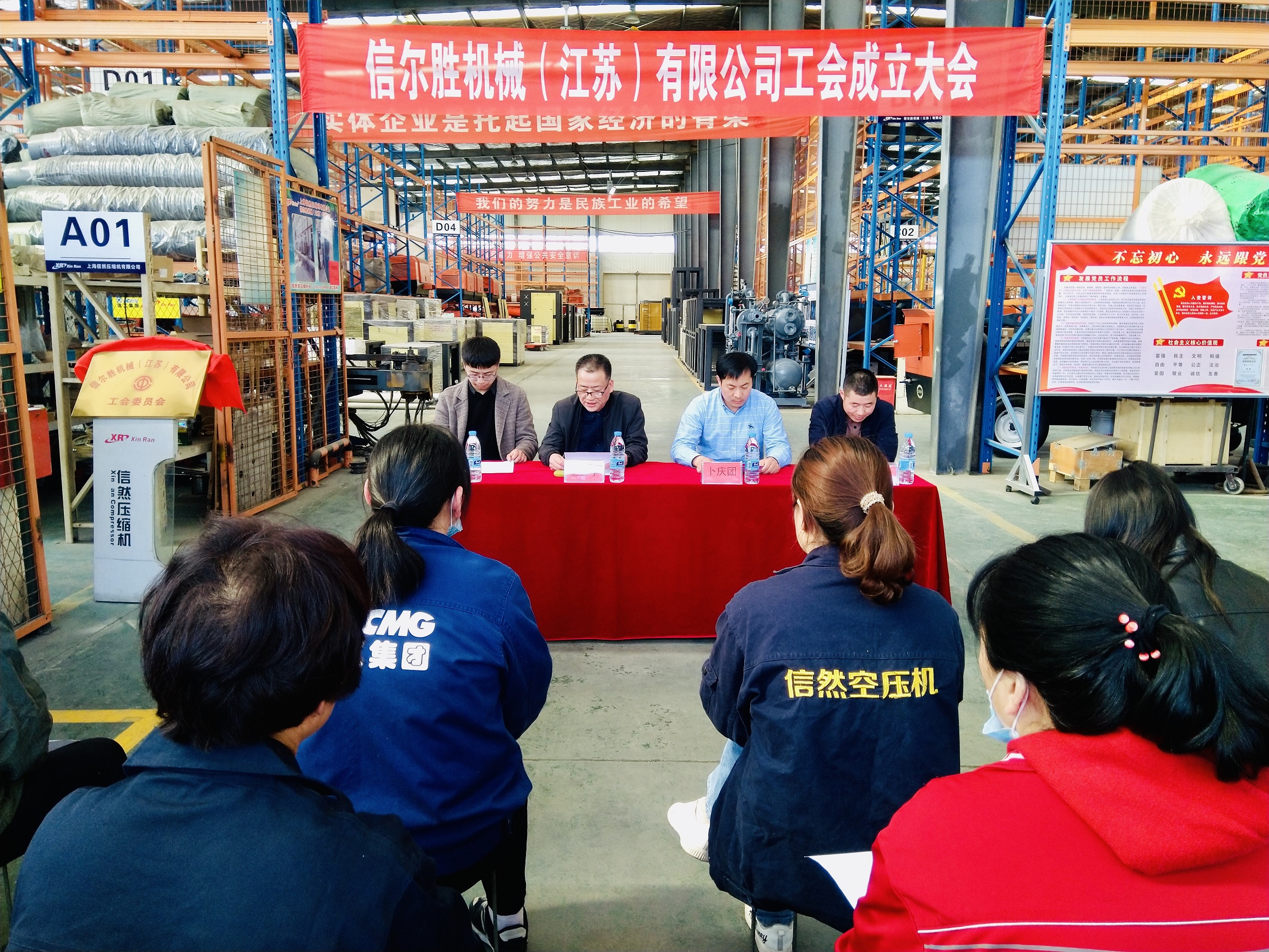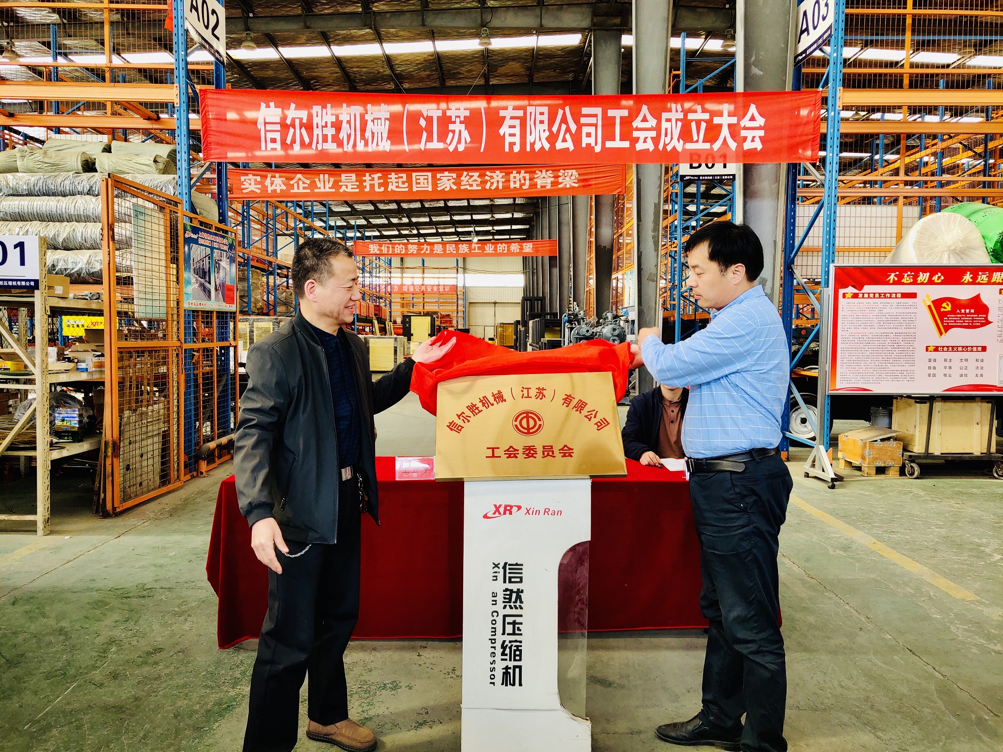 縣總工會(huì)王立學(xué)同志和信爾勝機(jī)械總經(jīng)理卜慶團(tuán)同志為工會(huì)揭牌
