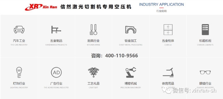 信然激光切割機(jī)空壓機(jī)為汽車、交通、航空、鈑金、電力電氣、電梯、家電、航天、電子、衛(wèi)生、冶金、文化等;產(chǎn)品涉及激光焊接、激光打標(biāo)、激光切割、激光打孔、激光熱處理、激光調(diào)阻等。等各大行業(yè)的知名企業(yè)提供金屬成形機(jī)床、激光加工設(shè)備、工業(yè)機(jī)器人、自動(dòng)化生產(chǎn)線、工廠管理軟件及面向多行業(yè)的智能車間/智能工廠解決方案。