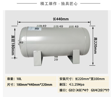 1、儲氣罐的容積大小應(yīng)以壓縮機(jī)排氣量的10%--20%之間,我們一般選擇15%,當(dāng)用氣量較大時(shí),儲氣罐的容積應(yīng)適當(dāng)?shù)募哟螅绻F(xiàn)場用氣量較小時(shí),可低于15%,不要低于10%。