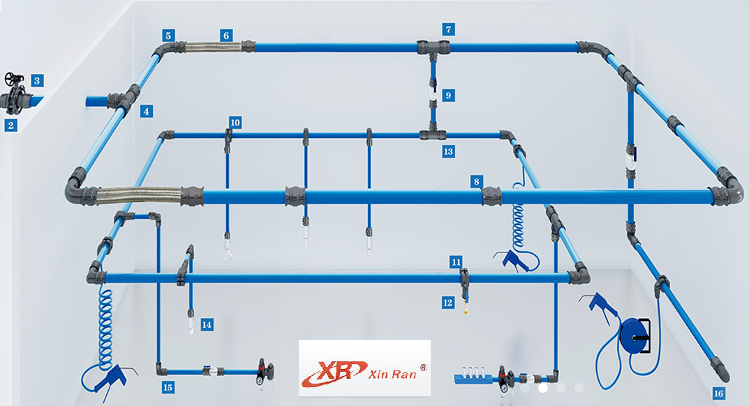 空氣管路系統(tǒng)內(nèi)層采用陽極氧化處理,內(nèi)壁光滑致密的AL2O3保護(hù)層。外壁采用特殊材料干粉噴涂,使內(nèi)外不被腐蝕,具有較強耐酸耐堿性。