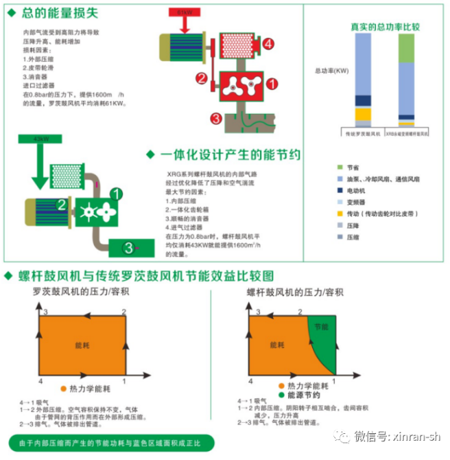 2、基于內(nèi)壓縮,對比羅茨鼓風(fēng)機(jī),主機(jī)節(jié)能提升;