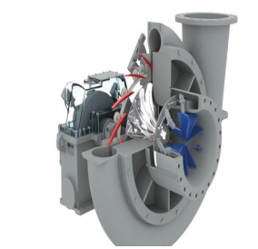 主要由轉子和定子組成,機殼由鑄造和焊接兩種形式。用于流量大、壓比低,壓比最大到 1.5 左右,流量范圍 700m3/min-5500m3/min。