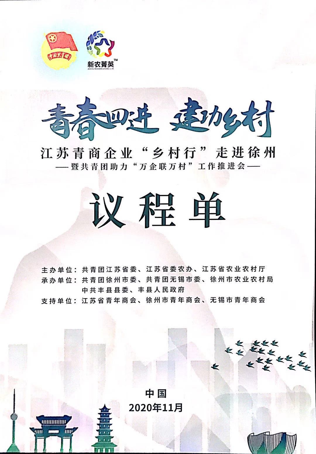 11月12日、13日江蘇青商企業(yè)鄉(xiāng)村行走進(jìn)徐州暨共青團(tuán)助力“萬(wàn)企聯(lián)萬(wàn)村”工作推進(jìn)會(huì)在徐召開(kāi)期間,共青團(tuán)江蘇省委書(shū)記司勇率隊(duì)來(lái)徐調(diào)研,徐州市委副書(shū)記徐大勇,團(tuán)市委書(shū)記潘曉,省青商會(huì),市青商會(huì)及縣區(qū)各青商會(huì)會(huì)長(zhǎng)等陪同。