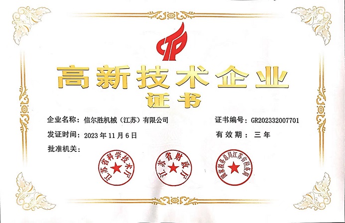 信爾勝機(jī)械(江蘇)有限公司再次榮獲