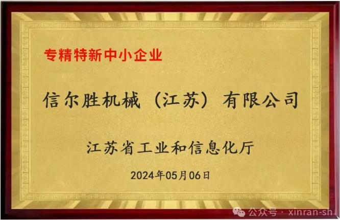 祝賀信然壓縮機(jī)江蘇工廠- -信爾勝機(jī)械(江蘇)有限公司榮獲“專精特新”中小企業(yè)稱號(hào)!