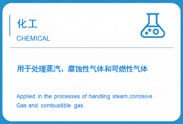 四、化工CHEMICAL用于處理蒸汽、腐蝕性氣體和可燃性氣體。Applied in the processes of handling steam,corrosive Gas and combustible gas.