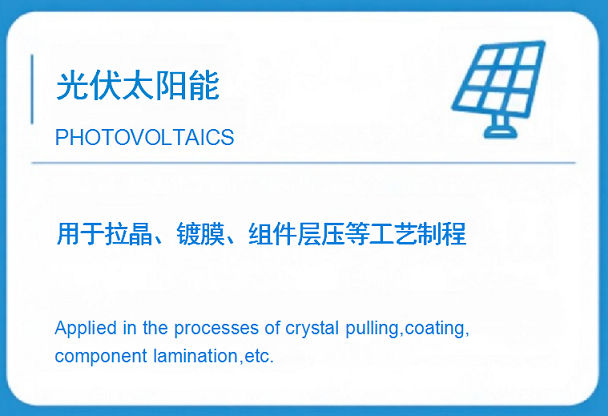 五、光伏太陽(yáng)能PHOTOVOLTAICS用于拉晶、鍍膜、組件層壓等工藝制程。Applied in the processes of crystal pulling,coating, component lamination,etc.
