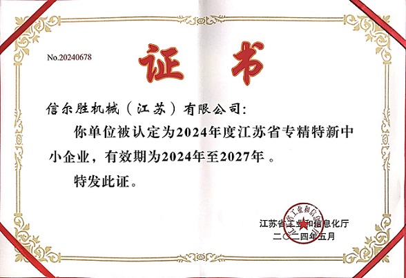 信然壓縮機江蘇工廠--信爾勝榮獲“專精特性中小企業(yè)”證書