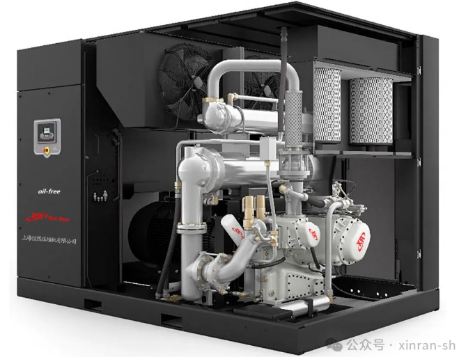 3. 高效穩(wěn)定:信然無油干式雙螺桿空壓機的壓縮效率高,運行穩(wěn)定,減少了因油污染導(dǎo)致的故障率,提高了生產(chǎn)效率。