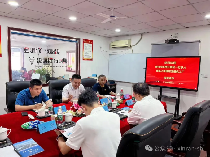 7月3日,泰興市虹橋開發(fā)區(qū)管委會主任孫帥,招商辦孫軍,王曉春等蒞臨信然壓縮機(jī)參觀考察。信然壓縮機(jī)生產(chǎn)廠長高翔、技術(shù)經(jīng)理馬波、辦公室主任程焱等熱情接待。